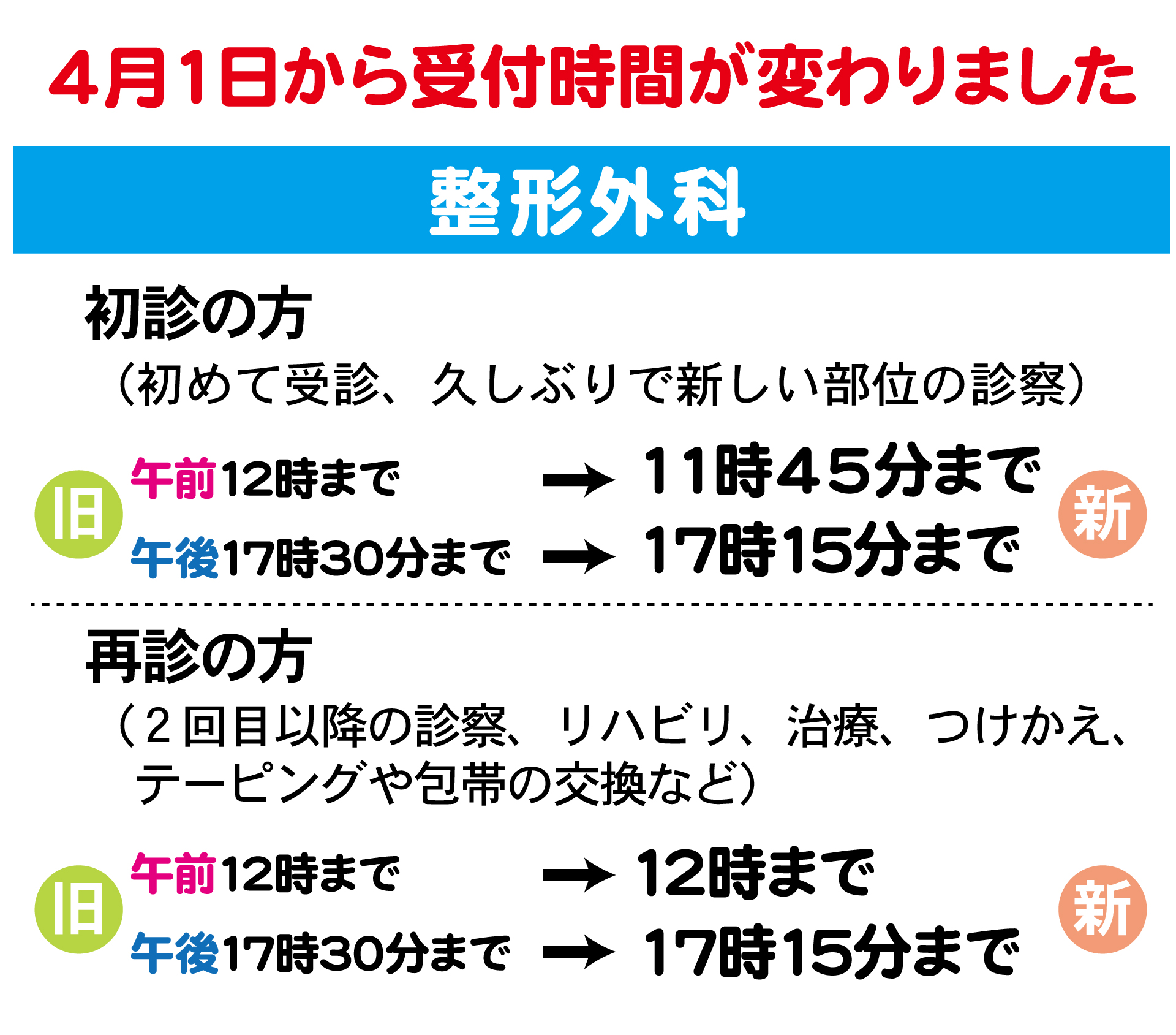 6月7日(土)整形外科の診察受付は 8時30分~9時30分までとなります *リハビリ・物理療法は通常